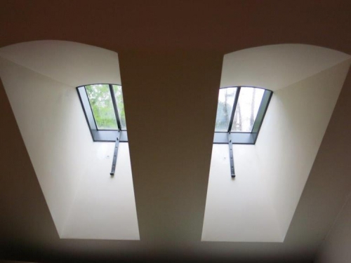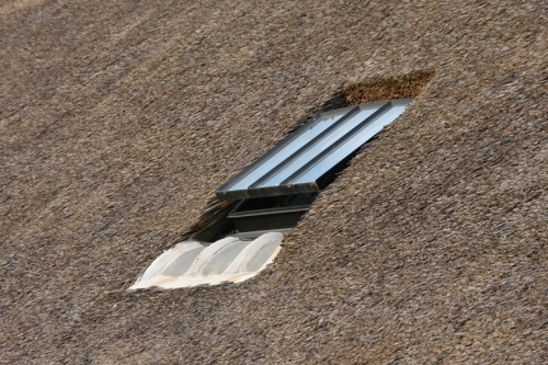 One attractive, noticeable detail in the façade or between the roof tiles is a small metal or cast iron window frame.